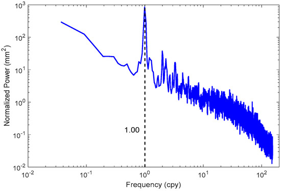 Stacked periodograms of displacement time series of all the grids.