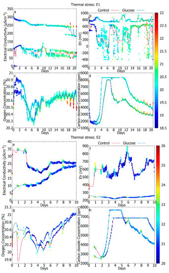 | 3-Pt (Custom-built by Paleo Terra, The Netherlands. Platinum sensing elements at distances 10, 20, and 30 mm, respectively, from the tip allowing for redox measurements at different depths of the experiment samples) redox probes and Ag|AgCl wire with 3M KCl reference probes | Atlas Scientific EZO™ ORP circuit | Redox potential | −1019.9–1019.9 mV | ±1 mV |
