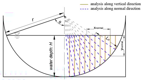 It can be seen from Table 2 that when the measuring velocity and the log-law are analyzed for consistency, the error value obtained along the normal direction is much lower than the error value obtained along the vertical direction. This can prove the correctness of the analysis along the normal line in the arc-bottomed channel.