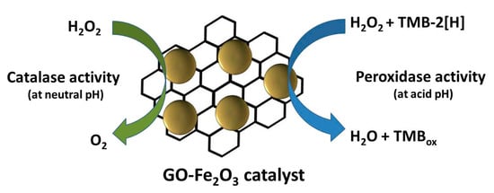 Scheme of catalytic action of graphene oxide-based Fe2O3 enzyme-like mimetic of peroxidase and catalase [] (modified).