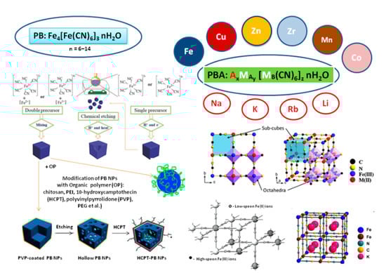 PB and its analogues (PBAs) are cheap, easy to synthesize, environmentally friendly and are prospect for wide applications in different fields, including basic research and industrial purposes [,,,,,] as well as in medicine [,,,,,,,].