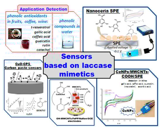 - Garcia, L.F.; Souza, A.R.; Lobón, G.S.; dos Santos, W.T.P.; Alecrim, M.F.; Santiago, M.F.; de Sotomayor, R.L.Á.; Gil, E.S. Efficient Enzyme-Free Biomimetic Sensors for Natural Phenol Detection. Molecules 2016, 21, 1060. [Google Scholar] [CrossRef] [PubMed]