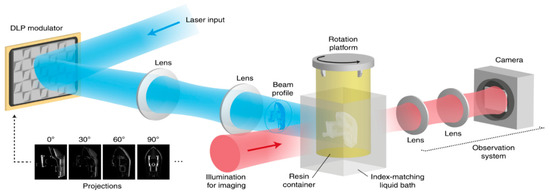- Loterie, D.; Delrot, P.; Moser, C. High-resolution tomographic volumetric additive manufacturing. Nat. Commun. 2020, 11, 1–6. [Google Scholar] [CrossRef]