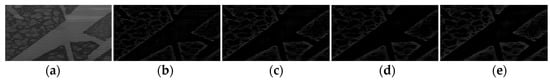 The statistical method is to establish a mathematical model using probability theory and mathematical statistics, which can be used to infer, predict, quantitatively analyze, and summarize the spatial distribution data of pixels []. Reference [] presents a multiple features-based cracks detection algorithm of bridge decks. A comprehensive analysis of multiple features (intensity-based, gradient-based, and scale-space) and multiple classifiers (random forests, support vector machines, and adaboost) show a peak classifier performance of 95%. Reference [] proposed a simple yet robust feature descriptor against noise named the adjacent evaluation completed local binary patterns for hot-rolled steel strip surface defects recognition. Filtering-based methods commonly apply a filter bank to an image to calculate the energy of the filter response. To provide an efficient multi-scale directional representation of different defects, the shearlet transform is introduced in []. With the popularity of artificial intelligence in recent years, machine learning has been applied extensively in surface defect detection. Reference [] used a supervised machine learning method called light gradient boosting machine (LightGBM) to detect cracks from the concrete surface imagery. The features are derived from pixel values and geometric shapes of cracks. In addition, spectral filtering approaches are suitable for the defect detection of uniform textured images composed of basic texture primitives with a high degree of periodicity []. Fourier transform (FT) was used in [] to detect defects in directionally textured surfaces. Nevertheless, the FT-based approaches are inadequate under the circumstances that Fourier frequency components related to the background and defect areas are highly mixed together []. Gabor wavelet was used in [] to extract features of images with periodic texture. Wavelet transform has been successfully applied in defect detection on statistical surfaces such as cold-rolled steel strips [] and hot-rolled steel strips [], and it has also been well used for homogeneous patterned surfaces []. Navarro et al. [] present a wavelet reconstruction scheme to detect defects in a wide variety of structural and statistical textures.