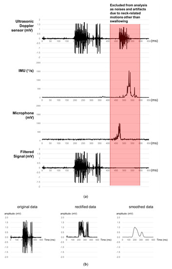- Lee, B.; Yang, G.; Hong, S.; Na, D.; You, H. Development of a swallowing screening algorithm using ultrasonic Doppler sensor and microphone. In Proceedings of the 2015 Fall Conference of the Ergonomic Society of Korea, Busan, Korea, 10–16 October 2015. [Google Scholar]