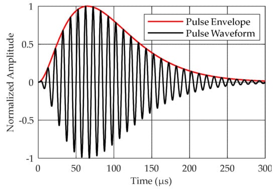 Let A(n) denote the normalized envelope of the reference pulse, as shown in Figure 1, where represents the sampling time. In this study, the sampling rate of the system is assumed to be 1 MHz (i.e., the sampling interval is 1 μs). The PPM time shifts are equivalent to a phase shift. Since a Loran-C signal has a period of 10 μs, a 1 μs advance is equivalent to a–π/5 radian shift, a 1 μs delay is equivalent to a π/5 radian shift, and no time shift is equivalent to a zero radian shift. Typically, the Loran-C receiver receives a mixed signal containing SWI, groundwave signal, and noise [19,20,21]. The skywave-to-groundwave amplitude ratio is represented by λ, and the delay of the SWI is represented by τ. Let denote one of the m-th Loran-C pulse envelopes in the Loran-C pulse group; thus, the mathematical model of the Loran-C pulse envelope can be expressed as: