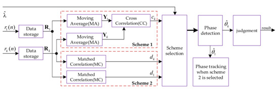 Evidently, in Equation (5) does not contain any phase information. Therefore, scheme 1 can realize non-coherent demodulation without an additional carrier phase tracking loop.
