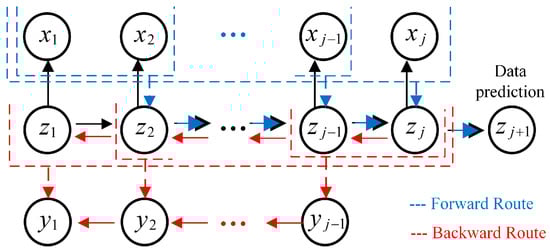 where the transition probability is , , the emit probability is , . is the normalized coefficient, A is the state transition matrix, C is the observation transformation matrix, Q is the variance of prediction error, R is the variance of observation error, means that the variable x follows the Gaussian distribution with mean and variance . Then, based on , the following relationship can be obtained: