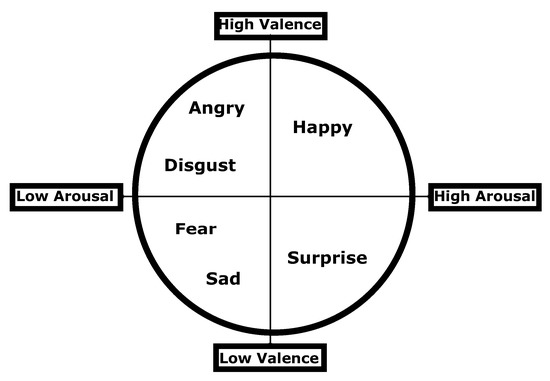 - Russell, J.A. A circumplex model of affect. J. Personal. Soc. Psychol. 1980, 39, 1161. [Google Scholar] [CrossRef]
