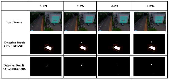 Detection result comparison of SuBSENSE and GhostDeReBS.