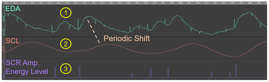 - Signal transformation: Each individual has a different skin conductivity level depending on various factors (see Section 2.1). As a result, despite the similar setting, significant differences in the baseline measurement as well as SCR amplitudes may occur between individuals. For this reason, the obtained EDA results should be standardized. Established methods are log or square root transformation fostering the comparisons between individuals [47]. Moreover, physiological factors (e.g., skin thickness) as well as potential disruptive factors (e.g., non-SCR) can be disregarded with specialized transformations.
