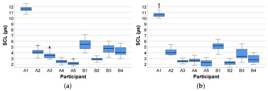 - Mean SCL: The tonic SCL describes the changing level of skin conductivity over a period of time (see Section 2.1). A state of physiological or psychological arousal usually leads to variations (e.g., increase) in the SCL. In our context, the comprehension of process models constituted a cognitively challenging task that created a state of arousal (e.g., attentive). Therefore, the analysis of the SCL allowed for the assumption about whether the comprehension of differently complex process models results in variations (e.g., elevation) in the SCL.