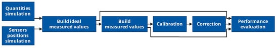 Until this step, sensors are assumed ideal. Thus, to obtain realistic measured values e.g., values that include the real behaviour of measuring instruments, faults must be introduced. The term “fault” is used according to its definition in the field of dependability [28]. It is the cause of an error generating the failure of the system for example, its deviation from its correct service. The correct service here is the delivery of measurement results satisfying the metrological specifications of the instrument. The fault addressed by calibration strategies is the instrumental drift. It is defined according to the VIM as a “continuous change over time in [measured values] due to changes in metrological properties of a measuring instrument.” This is one of the most complex faults to detect. The influence on the performances of in situ calibration strategies of other faults (e.g., noise, spikes, missing data...) can also be studied by introducing them in the measured values (see Section 6.3.2).