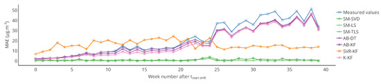 However, low-cost monitoring technologies usually suffer from various problems that still need to be tackled. One of them concerns the degradation of quality of the measured values over time [3,4]. Studies are frequently evaluating the performances of such devices from this point of view [5,6,7]. More precisely, low-cost sensors are subject to drift. This can be mitigated with periodic calibration [8]. Traditionally, calibration of a sensor is carried out in a controlled facility (e.g., in a laboratory), where it is exposed to standard values or co-located to a reference instrument. This operation, even when conducted in field [9], is often not affordable in the context of dense low-cost sensor networks. To mitigate this cost, various in situ calibration strategies have been developed [10,11,12]. With them, calibration is carried out while leaving the sensors deployed in the field, preferably without any physical intervention.