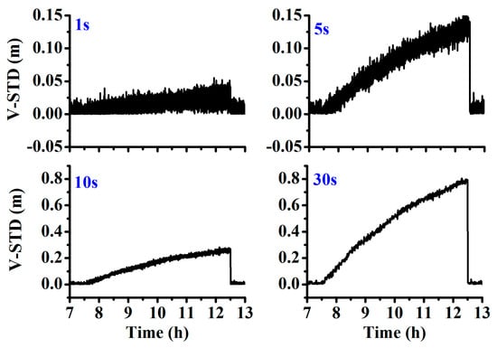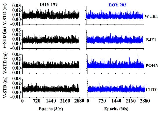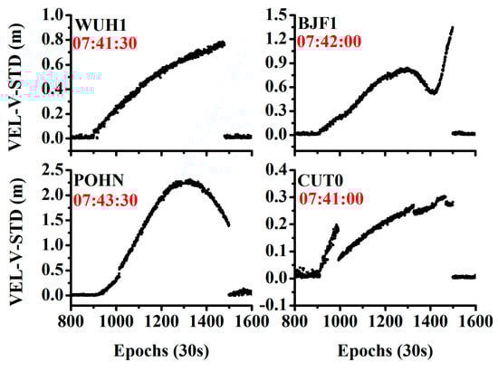 Time series of the STD of the observation residuals for different stations on 18 July 2016.