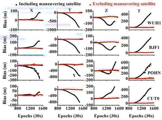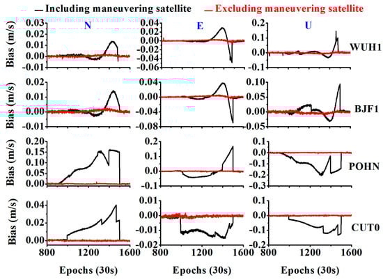 Comparison between the SPP results when including the maneuvering satellite and excluding the maneuvering satellite.