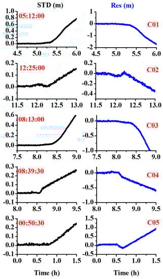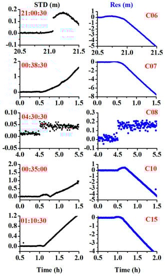 15], but the detection was not executed in real time. Huang et al. used the residuals of single point positioning (SPP) to detect the orbital maneuvering in real time, but only used low-precision pseudorange observations [
