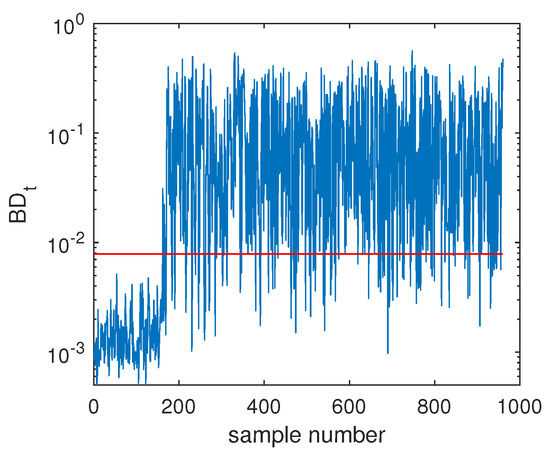 For any test vector , the squared distance to the center , denoted as , can be used as a monitoring index for judging if the test vector belongs to an anomaly point. Its expression is given by [15]: