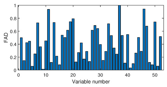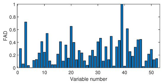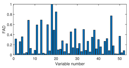 The value of ranges from 0 to 1. The variable corresponding to indicates the largest fault association degree, and the other variables with high values are also related to the fault. On the contrary, if is close to 0, that means the variable is under the normal condition.