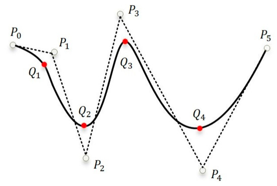 A B-spline curve of order p is interpolated using a given set of points . These points are the basic points of the curve, as shown in Figure 2.