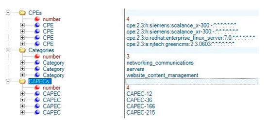 The resulting XML file is used to ensure that the selected worst-scenario CAPEC can pose a threat to the CPE category and, in particular, to the CPE being examined. In this way, it can be assured that the risk is calculated based on a CAPEC that not only is the worst-scenario but also is applicable to the CPE being examined.