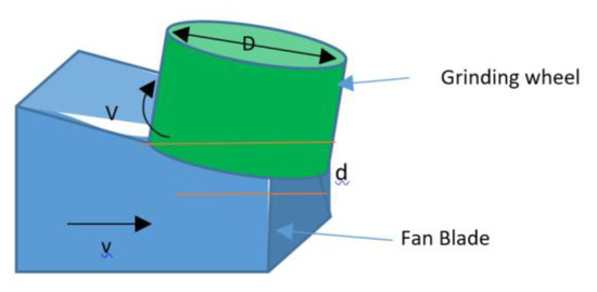 d, to apply to the fan-blade surface. This is because according to Equations (7) and (8), depth has a contribution to both the temperature rises during cutting as well as the grinding forces.