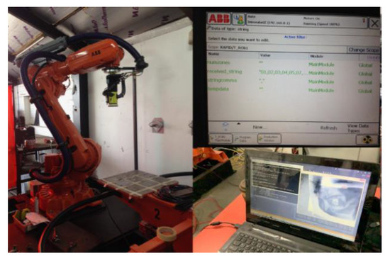 Figure 7) was used to collect data on depth and hence geometry of the part. This was necessary to ensure that a desired cutting force is maintained throughout the grinding operation. In simulations, the sensor was separated from the grinding end-effector by a longitudinal distance of 50 cm to prevent the dust from interfering with readings during the physical grinding process.