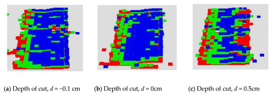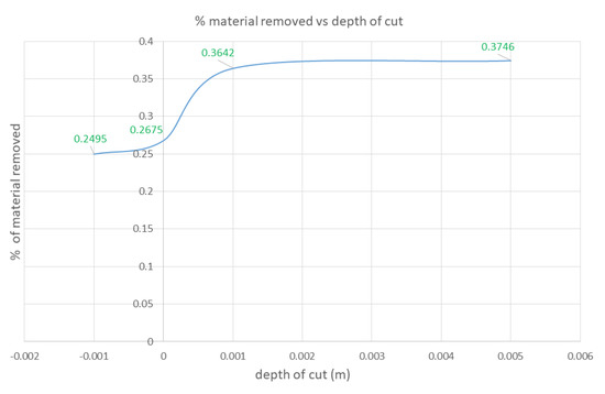 Figure 4) enabled us to assess the effects of the depth value on the fan-blade surface using simulated vision. Also, the MRR (Equation (2)) was used to assess the effects of the grinding forces on the fan blade.