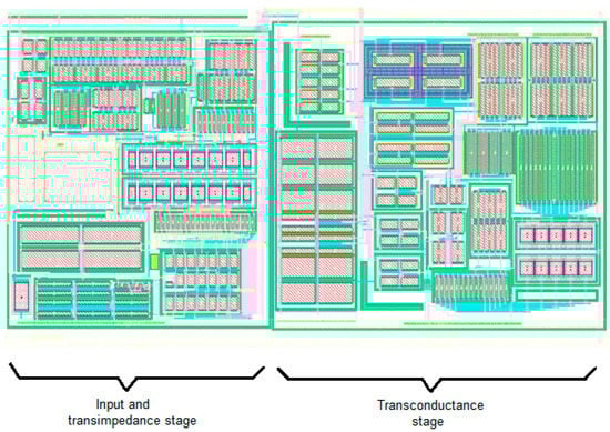 The number of simulated and measured results confirms functionality of the designed circuit with assumed parameters. The tolerable differences between simulation and measurement are in the scope of the factory corner, given possibly by the uncertainty of the MOS transistor KP transconductance parameter or, due to the nature of deviation, probably by the lower internal bias currents. Summary of the experimented circuit properties are published in Table 3. The illustrative Cadence layout is presented in Figure 16.