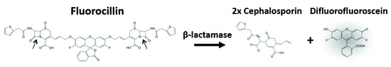 The detection mechanism of bacterial β-lactamase using Fluorocillin.