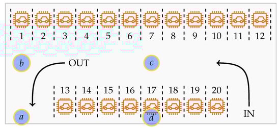 When the number of vehicles exceeds the number of slots in a particular parking area of the city, the parking management companies seek to maximize the objective function (1). This can be expressed as (2) where is the number of users who can afford the current cost of parking, and is the maximum cost that the jth driver can afford. The bidding is enabled when there are fewer available slots M than the number of drivers . From (2), for all parking slots (indexed with j), until up to M number of available slots, it prioritizes the highest ones from the list of drivers when the bid value is more than the current set price of an individual slot. In the case when a driver fails to win the bid, the system will put them in the next nearest parking area request queue where there is comparatively less demand. This happens in real time, as it is processed at the time of the request is made. The parking system’s algorithm running in edge and cloud gateways will perform this in a synchronized manner so that drivers do not have to bid multiple times, nor does it become a hassle.