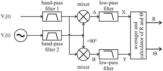 - Van Baak, D.A.; Herold, G. Response of a lock-in amplifier to noise. Am. J. Phys. 2014, 82, 785–797. [Google Scholar] [CrossRef]