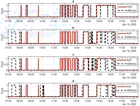By combining the proposed fault detection method with the best classifier (ANN), as presented in the previous Section, the final confusion matrix is presented in Table 13. In order to obtain such result, first, instantaneous data are applied to the fault detection model and, for each detected fault, the classifier is used to identify the corresponding fault. With that, the confusion matrix includes the normal class.