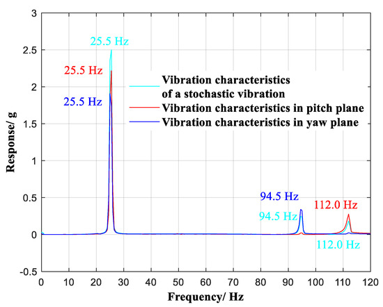 A comparison of the vibration characteristics of the selected stochastic vibration, i.e., the vibration component in the pitch plane and the vibration component in the yaw plane, is shown in Figure 10.