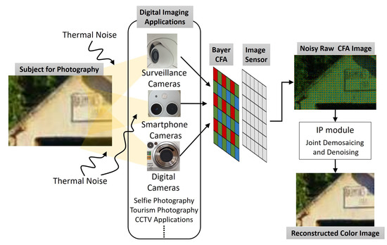 Acquisition system of digital cameras in digital imaging applications. CFA—color filter array, IP—image processing.