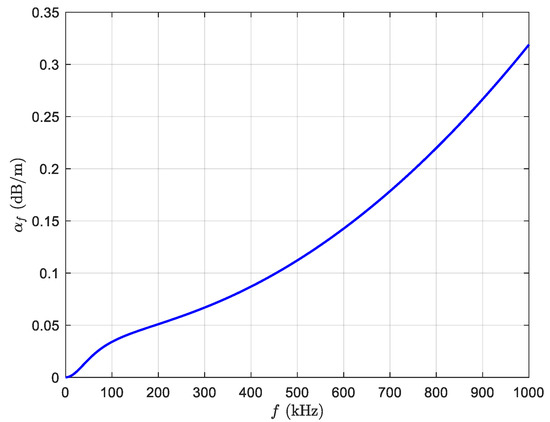 While considerable efforts have been devoted to improving the localization accuracy in terms of the RSS-based scheme, the general effectiveness of these techniques has remained elusive in practice. Most existing works were investigated at a relatively low transmission frequency, for instance, 10 kHz to 100 kHz in [11,13,24], which, in other words, means a relatively low transmission data rate [26]. If one would like to have a higher transmission data rate, it must level up the transmission frequency. However, the problem is that the absorption loss would increase dramatically over the rise in the transmission frequency, according to [15]. For instance, if the distance between a receiver and a transmitter is 200 m while the transmission frequency is 484 kHz, i.e., the absorption coefficient is 0.1 dB/m [13,15], the absorption loss would reach 20 dB, which could degrade the localization accuracy dramatically. In this case, from the practical point of view, it is entirely meaningful to investigate an absorption mitigation technique to decrease the adverse impact of the absorption on localization in UWSNs.