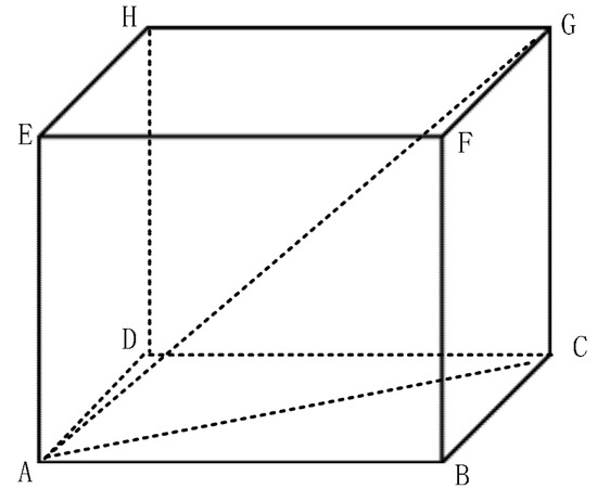Further, assuming that the maximum absorption is , i.e., . Then, the maximum absorption can be determined if the deployment area of UWSNs is known. For instance, if the area is 100 m × 100 m × 100 m, referred to as Figure 3, the maximum distance of two nodes is AG or BH or CE or DF, i.e., 100 m. Assuming that is 454 kHz, i.e., according to [13,15], then .