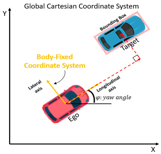 From this data processing, we assume that one can obtain adequately accurate tracking information, and the necessary vehicle state tracking information are presented as follows (see Figure 4).