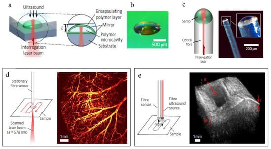 - Guggenheim, J.A.; Li, J.; Allen, T.J.; Colchester, R.J.; Noimark, S.; Ogunlade, O.; Parkin, I.P.; Papakonstantinou, I.; Desjardins, A.E.; Zhang, E.Z.; et al. Ultrasensitive plano-concave optical microresonators for ultrasound sensing. Nat. Photonics 2017, 11, 714–719. [Google Scholar] [CrossRef]