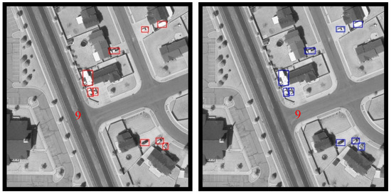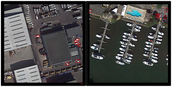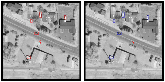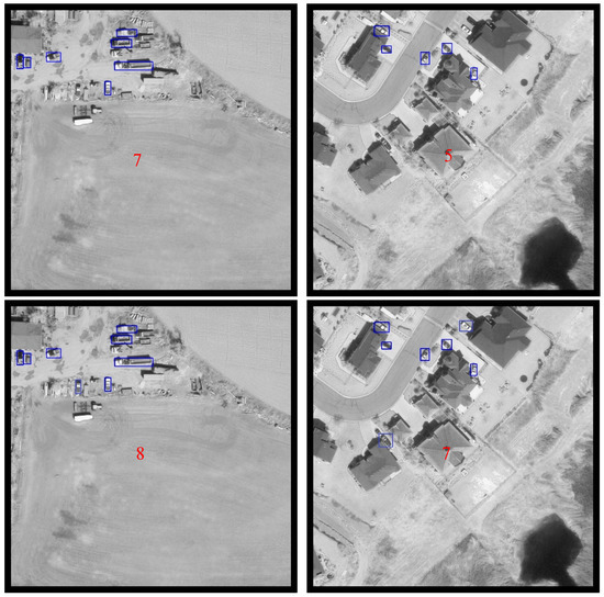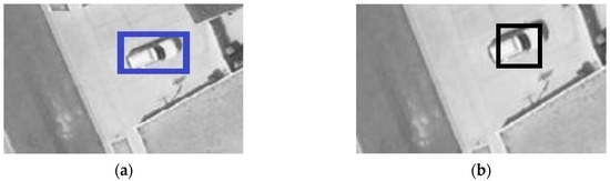 The original annotation of VEDAI dataset includes the centroid, orientation, and coordinates of four corners of each instance. Annotation 1 [1] retains the centroids and generate 40 × 40 pixel square bounding box around the centroids for the 1024 × 1024 resolution imagery (20 × 20 pixel square bounding box around the centroids for 512 × 512 resolution imagery). In this paper, annotation 2 compares the x, y coordinates of the four corners and selects the Xmin, Ymin, Xmax, Ymax. The detailed samples can be seen in Figure 4.