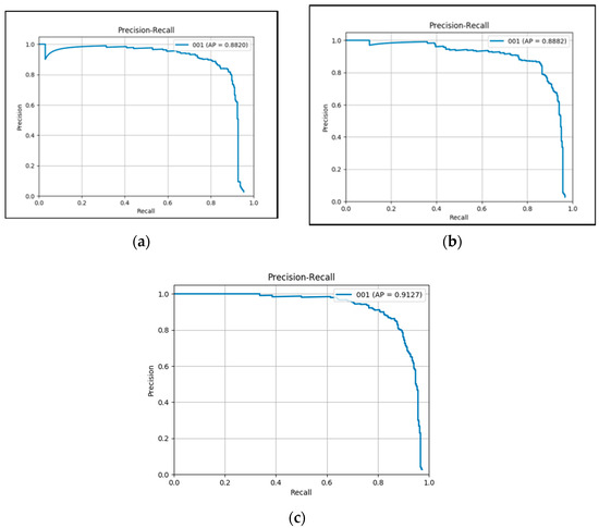 Figure 6a–c show the P-R curve of the proposed frameworks.