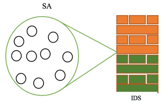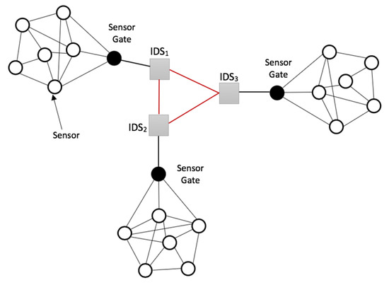 To increase its performance efficiency, several sensors are allocated to a particular IDS. By doing so, the IDS can build a virtual fence around the sensors under its authority, and all incoming and outgoing transmissions are filtered. An overview of the IDS building a virtual fence around the sensor area is presented in Figure 6.
