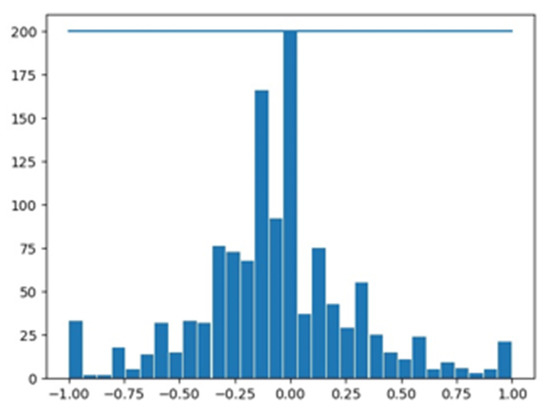 Balancing of the dataset shown in histogram graph.