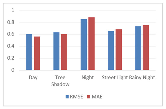 We can use the following quantitative indicators to analyze the performance of the model: root mean square error (RMSE) and mean absolute error (MAE), as well as qualitative indicators through visualization: appearance challenges, distance and size challenges, clustering and shape challenges, and prediction of steering wheel angle challenges.