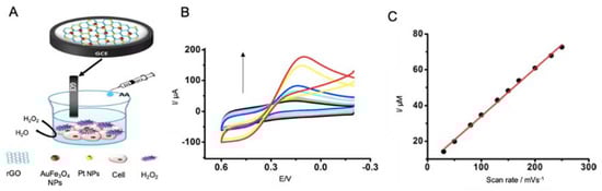 - Wang, L.; Zhang, Y.; Cheng, C.; Liu, X.; Jiang, H.; Wang, X. Highly Sensitive Electrochemical Biosensor for Evaluation of Oxidative Stress Based on the Nanointerface of Graphene Nanocomposites Blended with Gold, Fe3O4, and Platinum Nanoparticles. ACS Appl. Mater. Interfaces 2015, 7, 18441–18449. [Google Scholar] [CrossRef] [PubMed]
