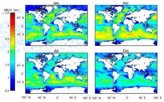 - von Engeln, A.; João, T. A planetary boundary layer height climatology derived from ECMWF reanalysis data. J. Clim. 2013, 26, 6575–6590. [Google Scholar] [CrossRef]