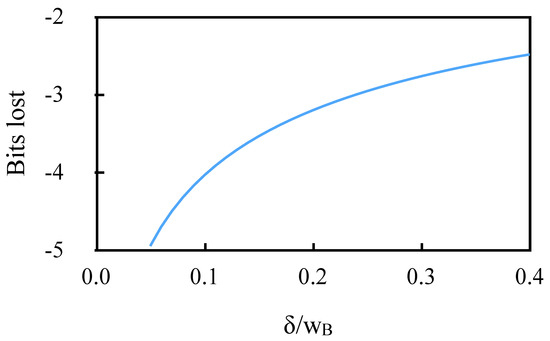 One bit from is then lost when the signal is at half the maximum possible reflected value. The last term in Equation (3) represents the effect of the sensitivity , which depends on the ratio . At a maximum practical value of , this accounts for 1.5 more bits lost from . For smaller , more bits are lost. Figure 2 shows the total bits lost from as a function of . Aside from maximizing the SNR, using a high value of is therefore essential to optimize the resolution of a DWDD instrument.