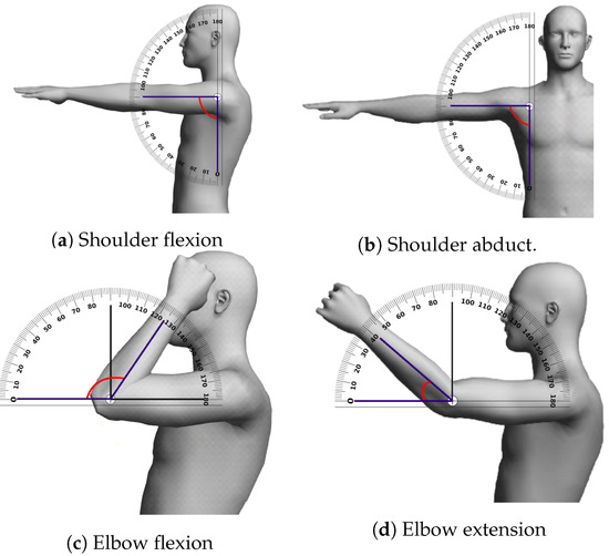 The QUEST metric has been previously used in a project where a joystick is handled by the patient [45], but here the QUEST report requires to be manually filled by the therapist. In contrast, NAOTherapist automates the process of measuring the angles in the patient’s extremities to calculate several items of the clinical metric and the generation of reports based on it. Due to the large number of elements evaluated in QUEST, and some technical limitations to capture some of them; this research is focused on calculating a subset of them: shoulder flexion, shoulder abduction, elbow flexion, and elbow extension.