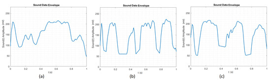 (a) Envelope time signal for the Circle. (b) Envelope time signal for the Square. (c) Envelope time signal for the Triangle.