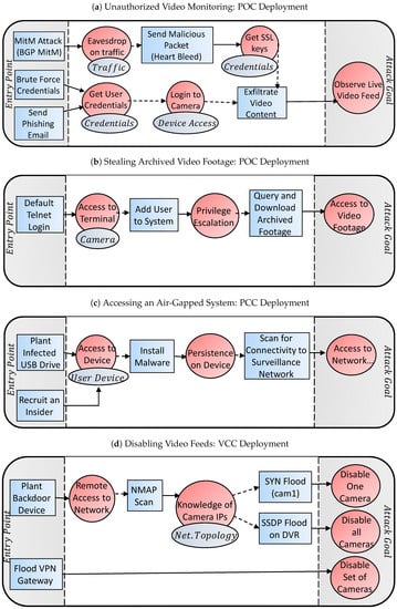 - There is a set of attackers who want to exploit the functionality of surveillance systems specifically. For example, state-actors or thieves performing reconnaissance over a geographic area and criminals planning to blackmail a victim with video footage.